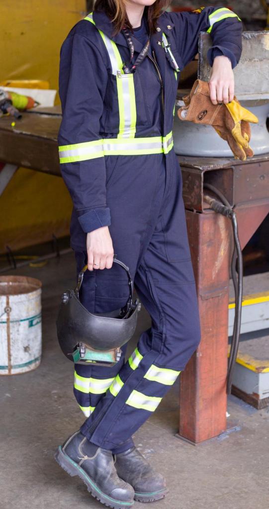 Ladies CSA FR HRC/CAT 2 Rated Coveralls. Also available in black with 4 inch CSA Striping